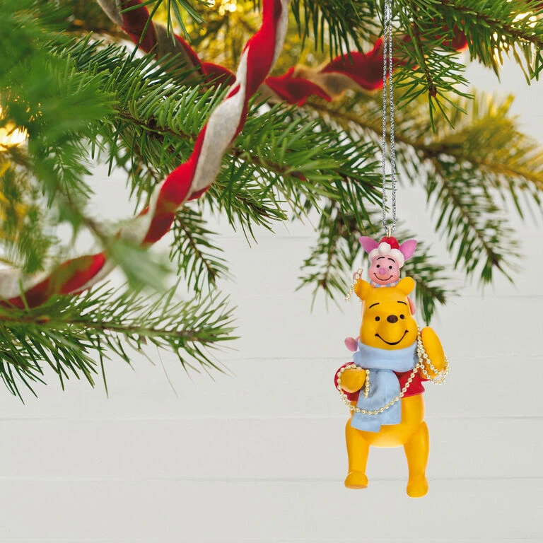 There’s nothing like spending the holidays with friends. Piglet and Winnie the Pooh share a fun moment of trimming the tree with colorful garland in this sweet Christmas tree ornament. Warm the heart of a friend, child or grandchild—or any Winnie the Pooh fan—with this cute decoration.