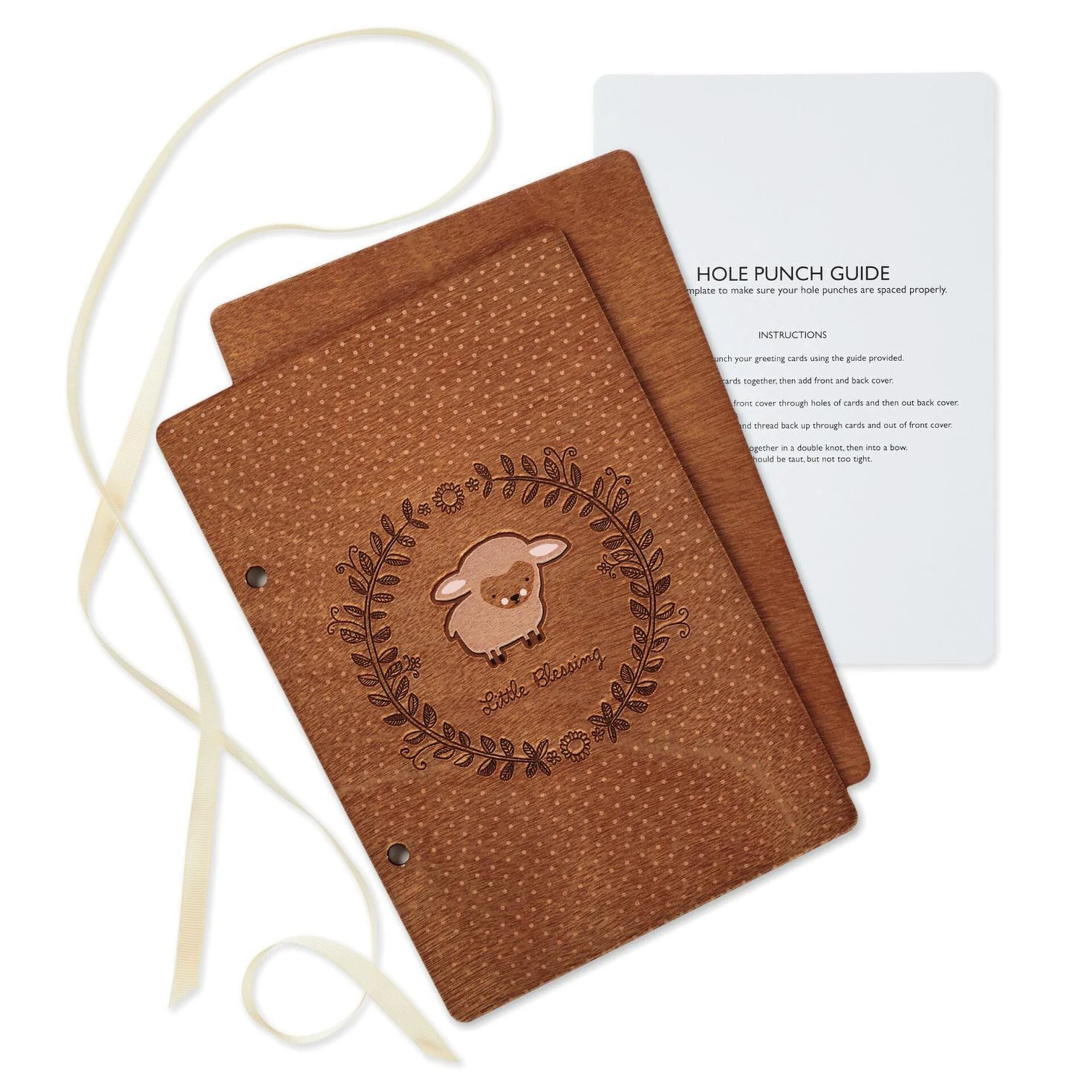 When baby is born, you want to hold onto every memory and milestone. Preserve and enjoy the heartfelt greetings you received by storing them in this adorable card holder. Wood panels with an etched image of a sweet lamb on the front cover are designed to hold a stack of cards, while decorative ribbon makes it expandable and secures them together to create a memorable keepsake you can browse and share. Makes a great baby shower or baptism gift idea.