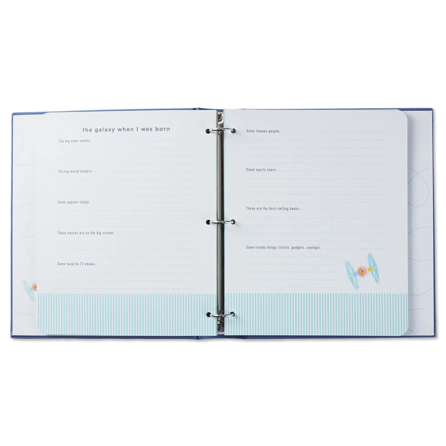 - Star Wars-themed baby book holds photos, memorabilia and more documenting baby’s first five years.